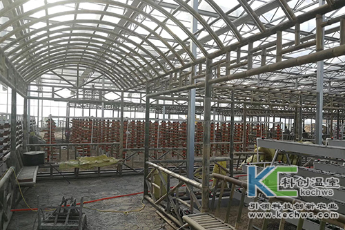 該無土栽培技術項目位于濟南,綜合運用了水培、基質培的無土栽培技術,并大量應用了竹藝裝飾,亭臺小溪穿插,營造了一種人與自然和諧相處的景象,實現了生產觀光一體。