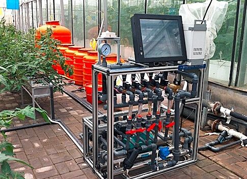營養液的循環控制系統是由循環系統、控制系統及在線監測系統組成,通過栽培床和營養液池,還有供液的管道以及回流管道實現,是無土栽培中的重要部分。在這個過程中,栽培床通過承載營養液為作為供應一些必要的營養和水分,并使作物的生長得到比較好的根際環境。而營養液則為栽培床承載的營養液提供貯存及供應的功能,它通過母液罐、酸堿罐、清水罐幾個部分將溶液透過電磁閥門控制而注入到營養液池。而供液系統則是為栽培床從貯液池運輸出供應的營養液,然后回流系統再將再把栽培床的營養液送回營養液池,這樣整個營養液的循環系統就完成了一次循環。
